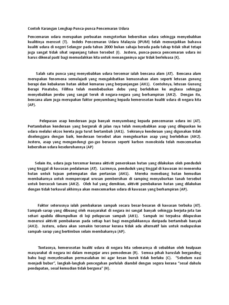 Contoh Karangan Pencemaran Alam Sekitar Blog Test Template